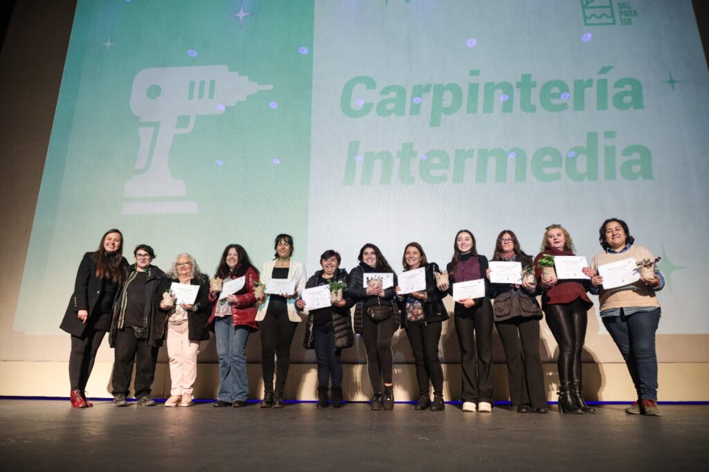 Carpintería, Fauna Fantástica, Electricidad Doméstica, son solo algunos de los 21 talleres impartidos durante este semestre por la Municipalidad de Valparaíso, los cuales entregaron diversas herramientas y habilidades a las mujeres porteñas. En un ambiente de alegría, compañerismo y orgullo, más de 300 porteñas recibieron su certificación por haber participado en los talleres de arte y oficio realizados durante el primer semestre de este año por Casa Taller, de la Dirección de Género: Mujeres y Diversidades de la Municipalidad de Valparaíso. Durante la ceremonia, realizada en el Teatro Municipal de Valparaíso, las asistentes recibieron sus diplomas de participación como reconocimiento, no solo a los conocimientos adquiridos, sino también a su motivación y perseverancia al haber participado activamente en alguno de los 21 talleres impartidos por este espacio. Ivonne Ávila, participante del taller de Guitarra Básica de Casa Taller, mencionó la relevancia de contar con este tipo de espacios: “Es muy importante, no solamente por el hecho de ser un taller, sino también porque nos ayuda y nos apoya a las mujeres. No para liberarnos, sino para entender cuál es la posición que tenemos, porque lamentablemente y siendo muy muy concreta en lo que digo, todavía existe mucho machismo y los espacios están muy reducidos, así que es importante que sigan”. Los talleres impartidos por la Municipalidad de Valparaíso no solo entregan herramientas prácticas en oficios y habilidades, sino que también buscan contribuir de manera concreta al proceso de autonomía económica de las mujeres y fortalecer los vínculos entre ellas. Además, incluyen oficios tradicionalmente masculinizados, como electricidad doméstica y mecánica de bicicletas, generando espacios donde las mujeres pueden aprender, decidir y construir sus propios caminos desde la autonomía y el empoderamiento. Por su parte la profesora del taller de carpintería básica e intermedia, Millaray Marchant Arriagada, indicó: “Es súper importante, porque se generan redes en los talleres, donde las mujeres pueden encontrar apoyo, comunidad, y aparte aprender oficios, que son históricamente más masculinizados. Así que me parece fantástica la opción, y que haya más oferta, porque hay hartas mujeres que quedan fuera de los cupos. Entonces también está bueno que se vaya ampliando la convocatoria y los cupos, para que pueda llegar más gente”. Por su parte la alcaldesa de Valparaíso, Camila Nieto, expresó: “Sabemos que los talleres impartidos por la Dirección de Género, generan un alto interés en las porteñas. Solo en este semestre fueron más de 600 las mujeres que postularon, lo que evidencia las ganas de querer aprender nuevos oficios o de contar con espacios de recreación. Por este motivo, como Municipalidad nos propusimos dar respuesta a esta demanda y aumentamos el número de talleres impartidos. Durante el primer semestre de 2024 se realizaron 13 talleres; este año aumentamos a 21 y para el segundo semestre de 2025 se impartirán 24 talleres, incrementando así su oferta programática y, por supuesto el número de participantes, dando mayores posibilidades a que más mujeres sean parte de estos espacios de aprendizaje y de construcción colectiva”. Cabe mencionar, que el municipio actualmente también se encuentra desarrollando los talleres de invierno, una nueva iniciativa que en esta primera edición cuenta con cinco talleres: dos de reciclaje textil, uno de trapillo y dos de información social.