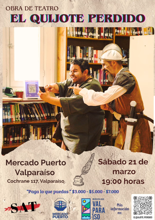 • Obra de teatro: El Quijote perdido. Sábado 21 a las 19:00hrs en Mercado Puerto – Cochrane 117, Valparaíso. Más información aquí