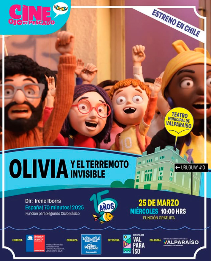 • Cine Ojo de Pescado «Olivia y el Terremoto Invisible. Miércoles 25 de marzo a las 10:00 hrs en Teatro Municipal de Valparaíso. Más información aquí