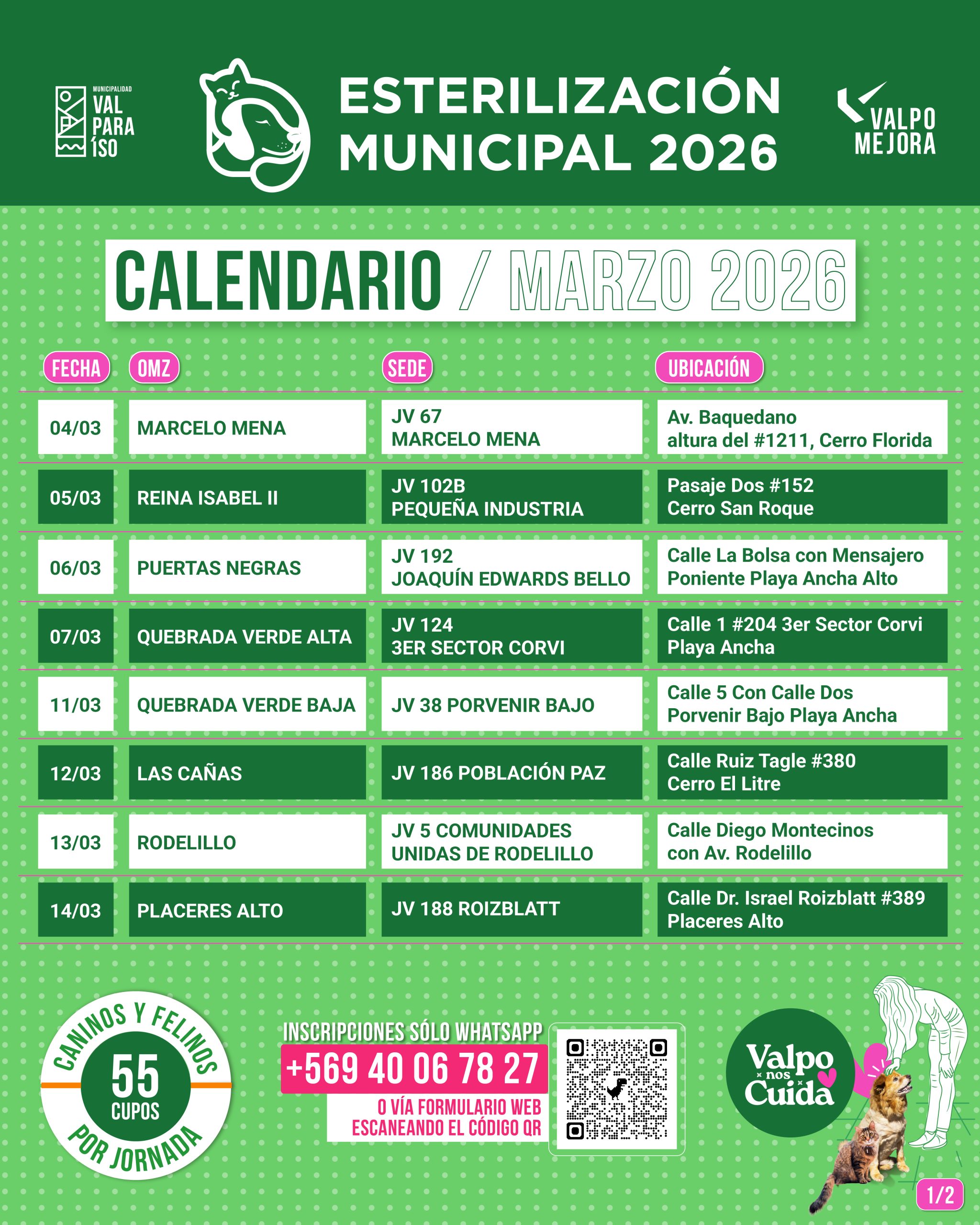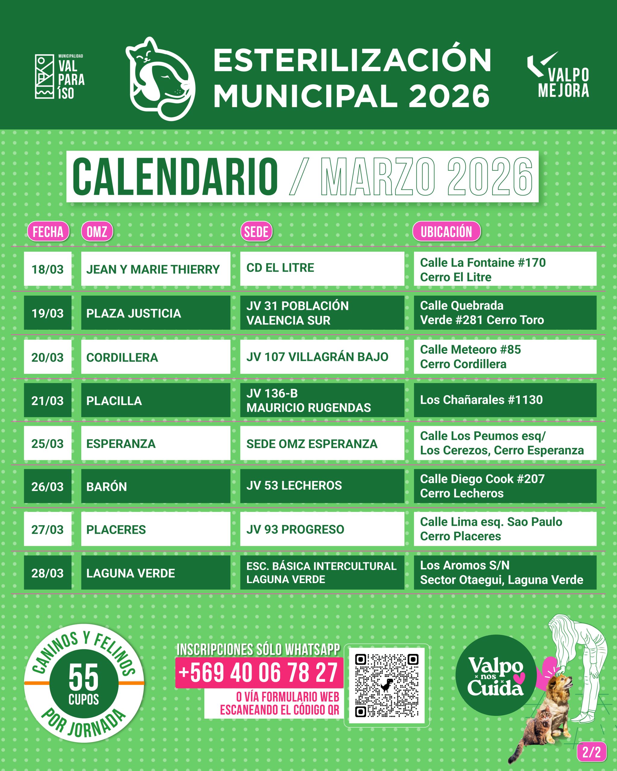 Inscripción para Esterilizaciones con Fondos Municipales Valparaíso 2026. Caninos y Felinos