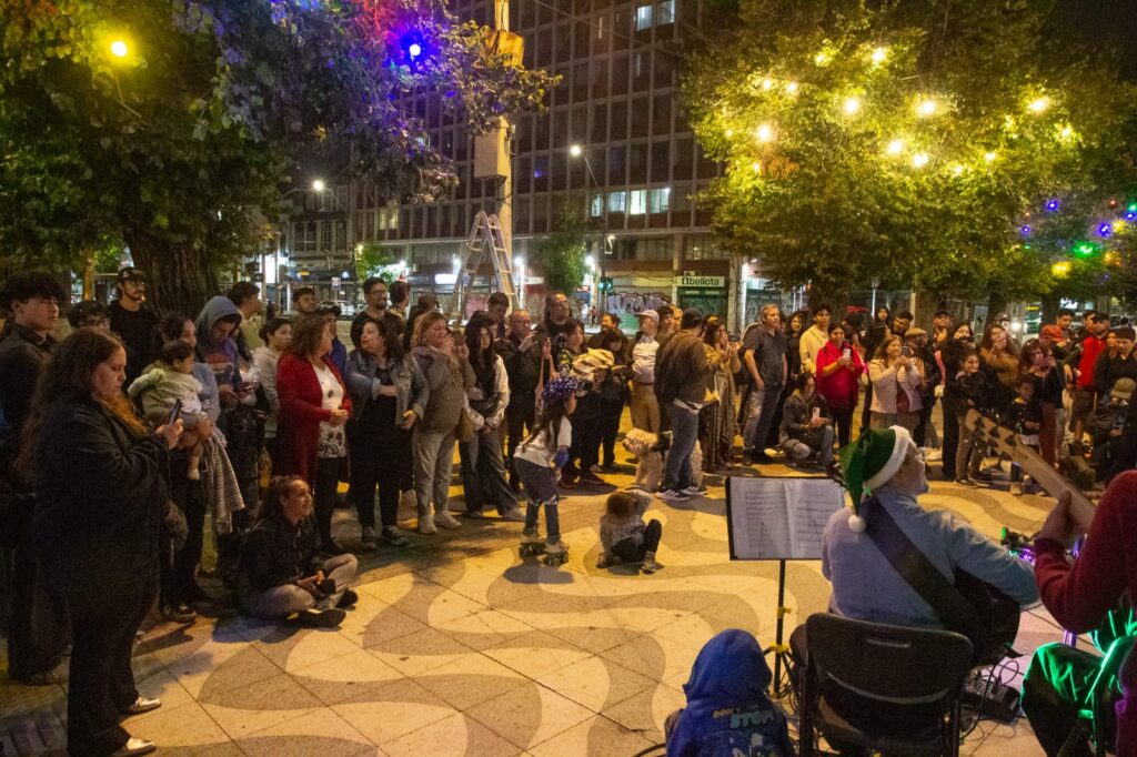 Desde el cerro Litre, Lidia Huerta resaltó el ambiente generado: “Me parece muy bonito, tocan muy bien los chiquillos y me gusta mucho, estoy muy contenta. Ojalá que sigan haciendo cosas así y que antes de Navidad podamos aprovechar harto las canciones y estar todos juntos”.