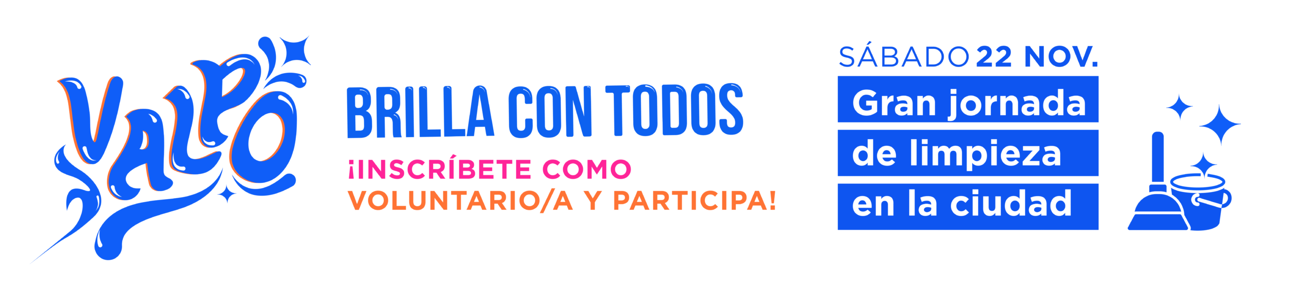 VALPARAÍSO BRILLA CON TODOS es una gran jornada de limpieza que se desarrollará en Valparaíso este sábado 22 de noviembre. Su objetivo es convocar a la ciudadanía a hacerse parte de la limpieza y el orden de la ciudad. Para eso, organizaremos despliegues municipales y ciudadanos de refacción, limpieza y embellecimiento de la ciudad en dos diferentes puntos: